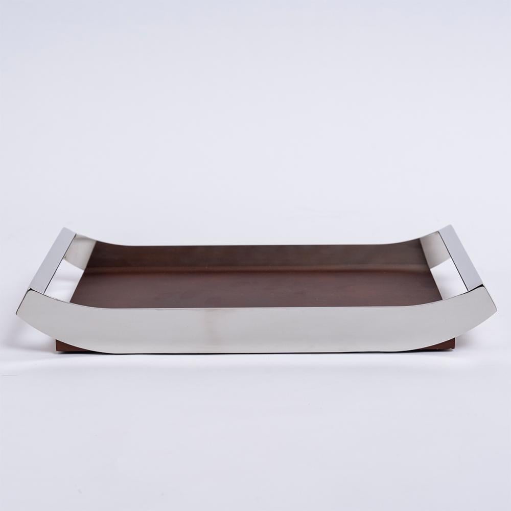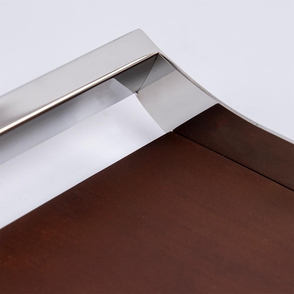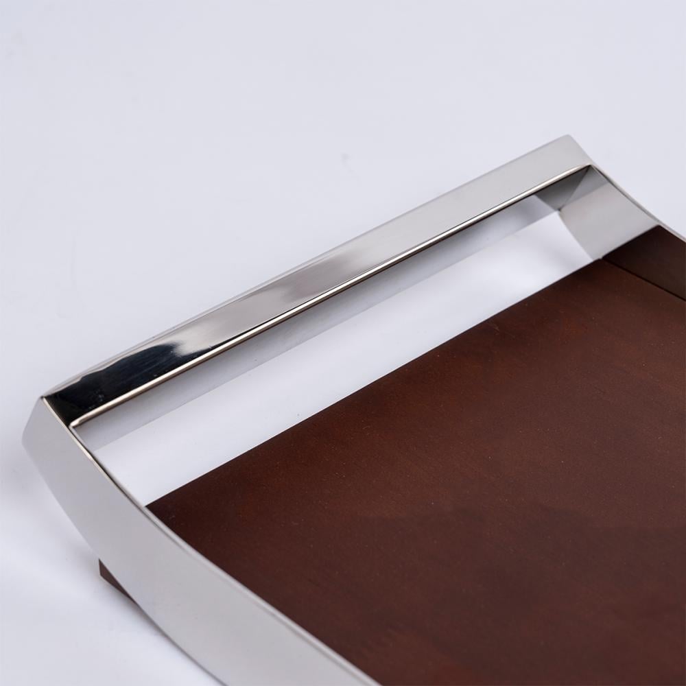صينية مستطيلة ستيل فضي و خشب - كبير