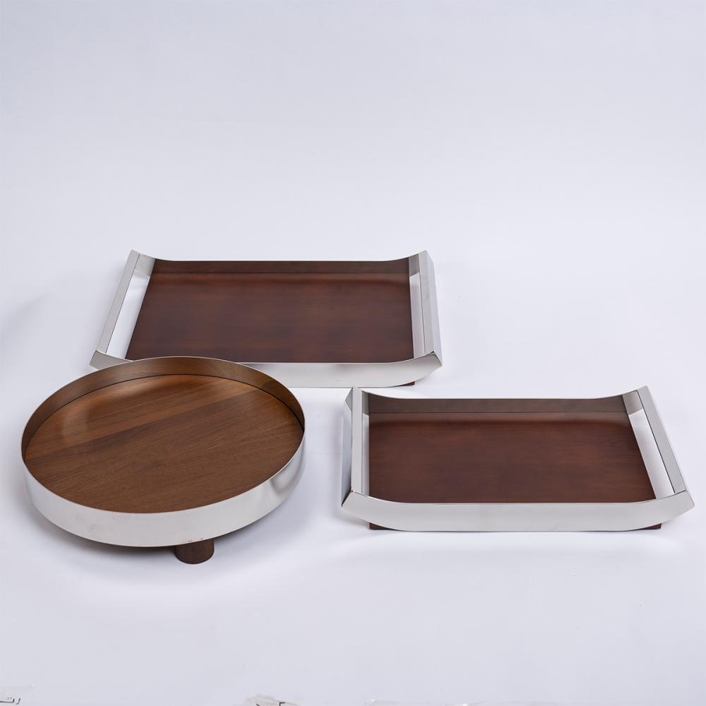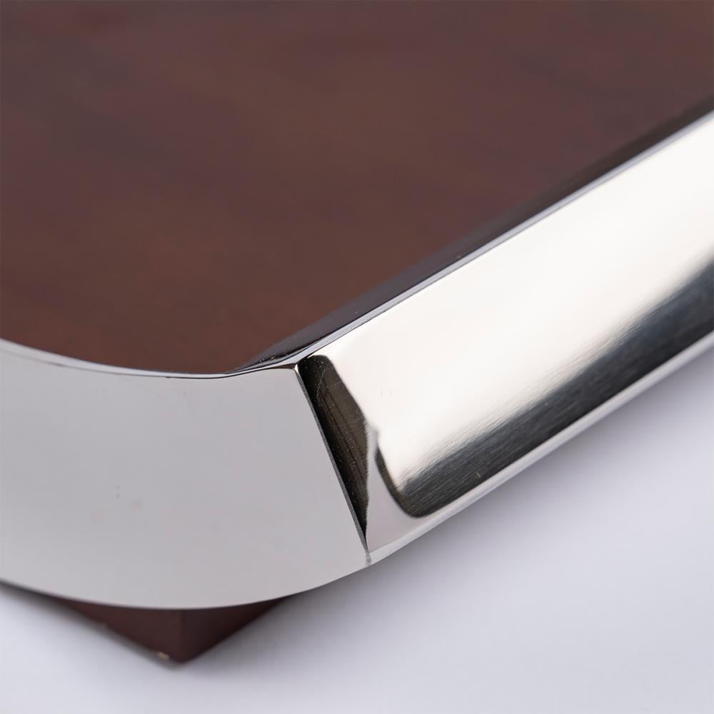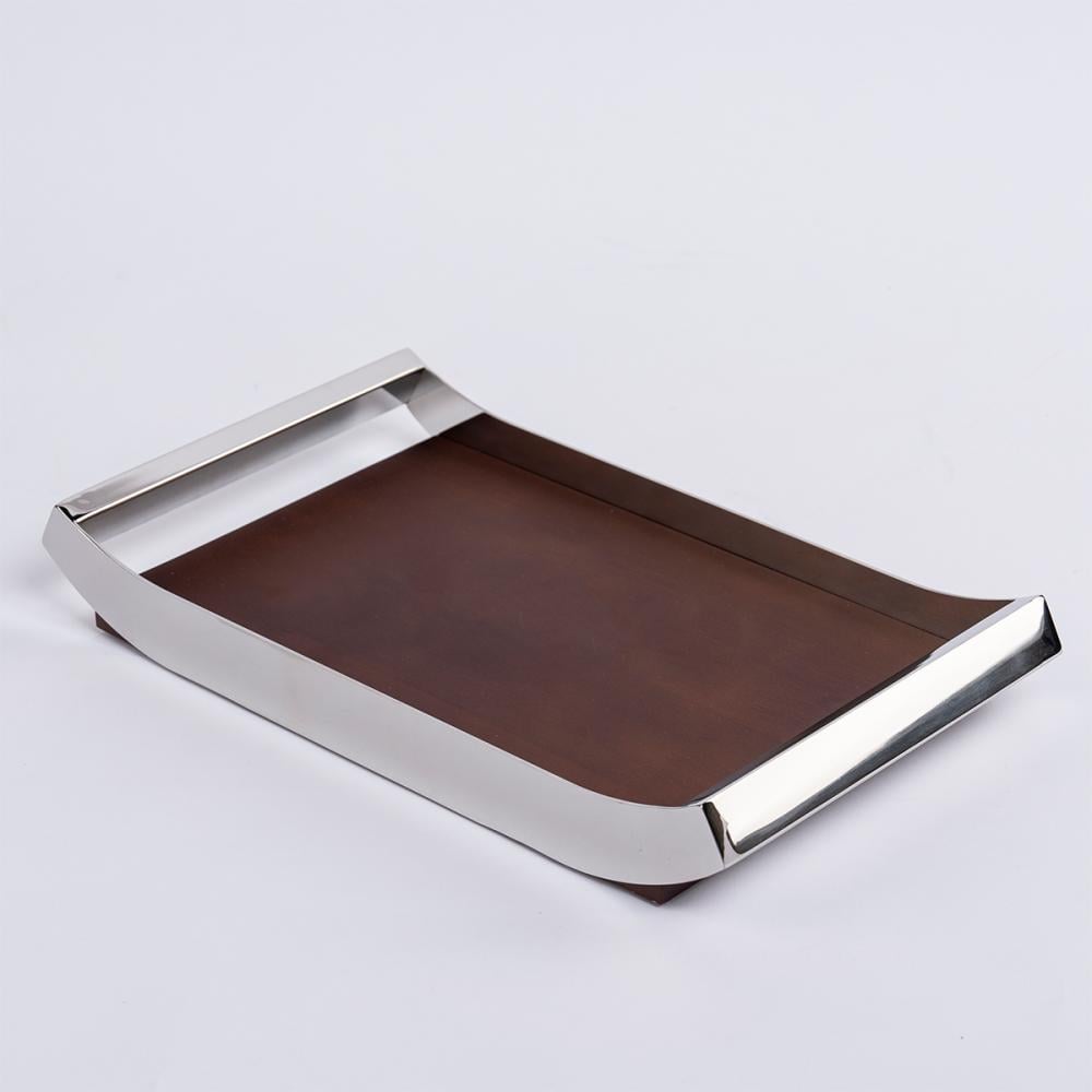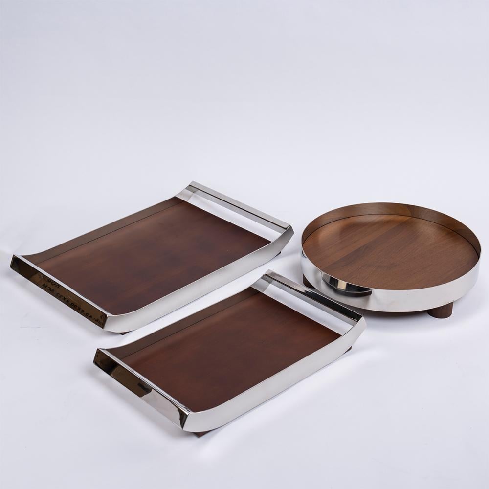 صينية مستطيلة ستيل فضي و خشب - كبير