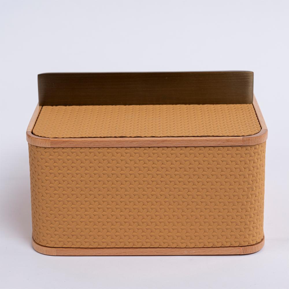 صندوق جلد بني بأطراف خشب و مسكة ستيل ذهبي - كبير